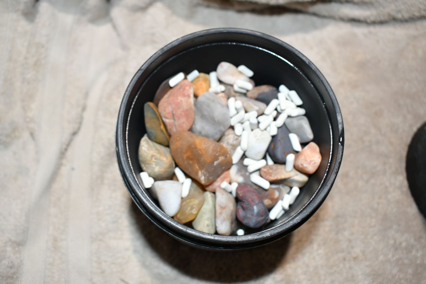 These are before I added the grit and water for the third stage of tumbling. You can see the ceramic media mixed in with the rocks in each barrel.