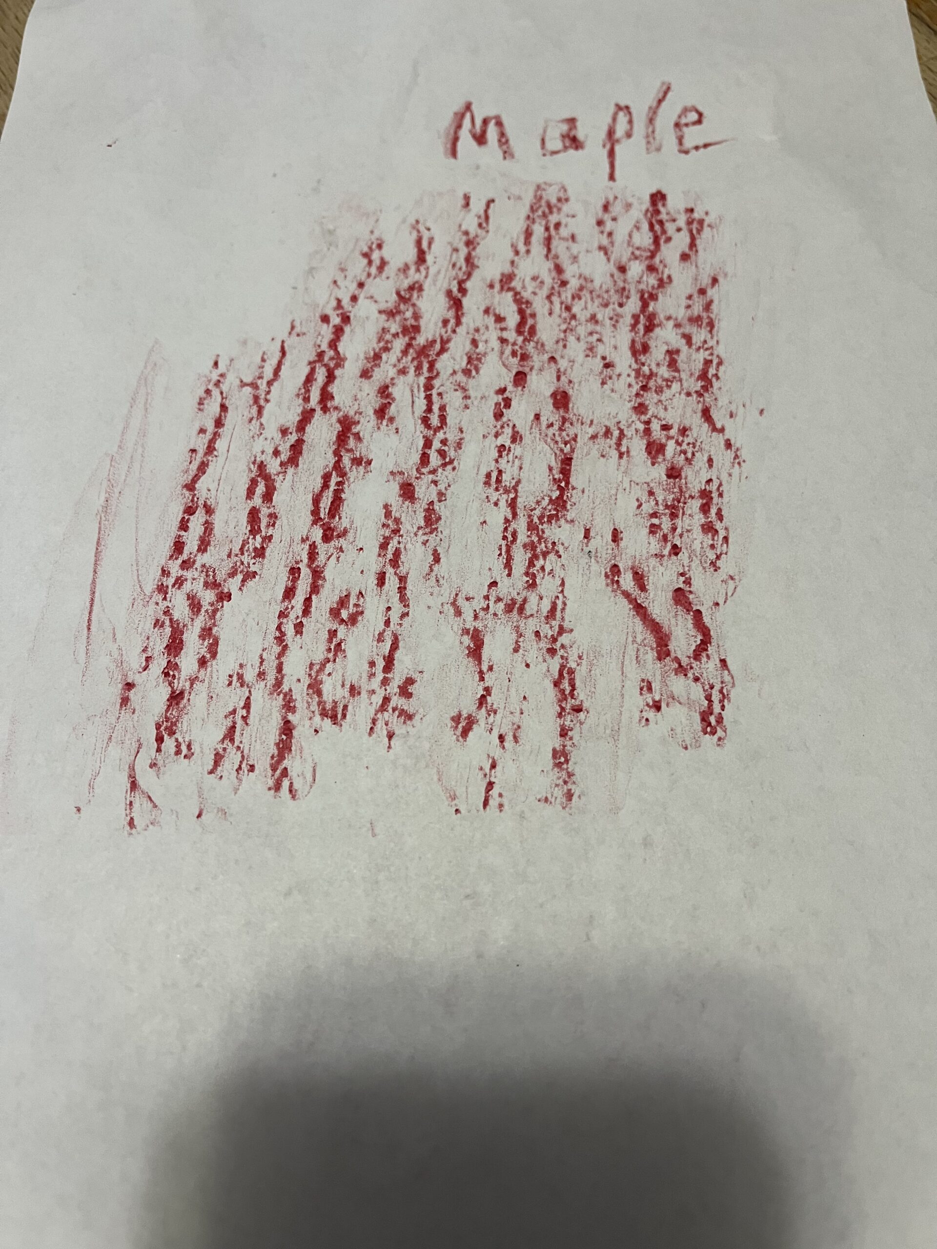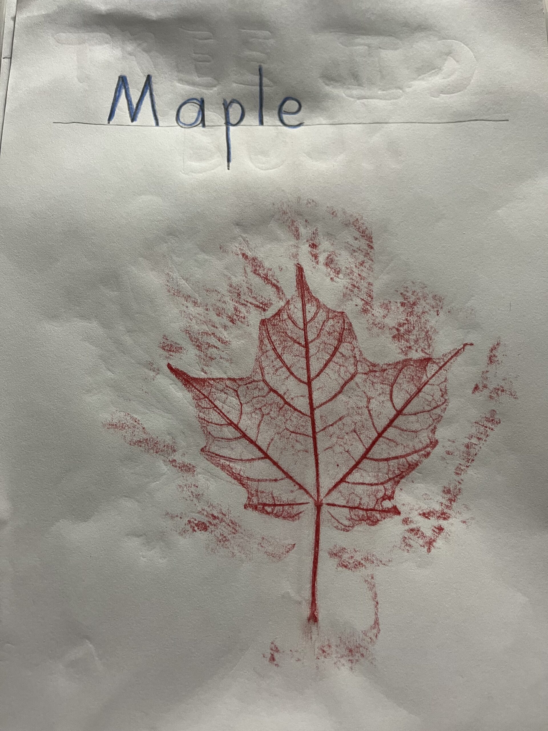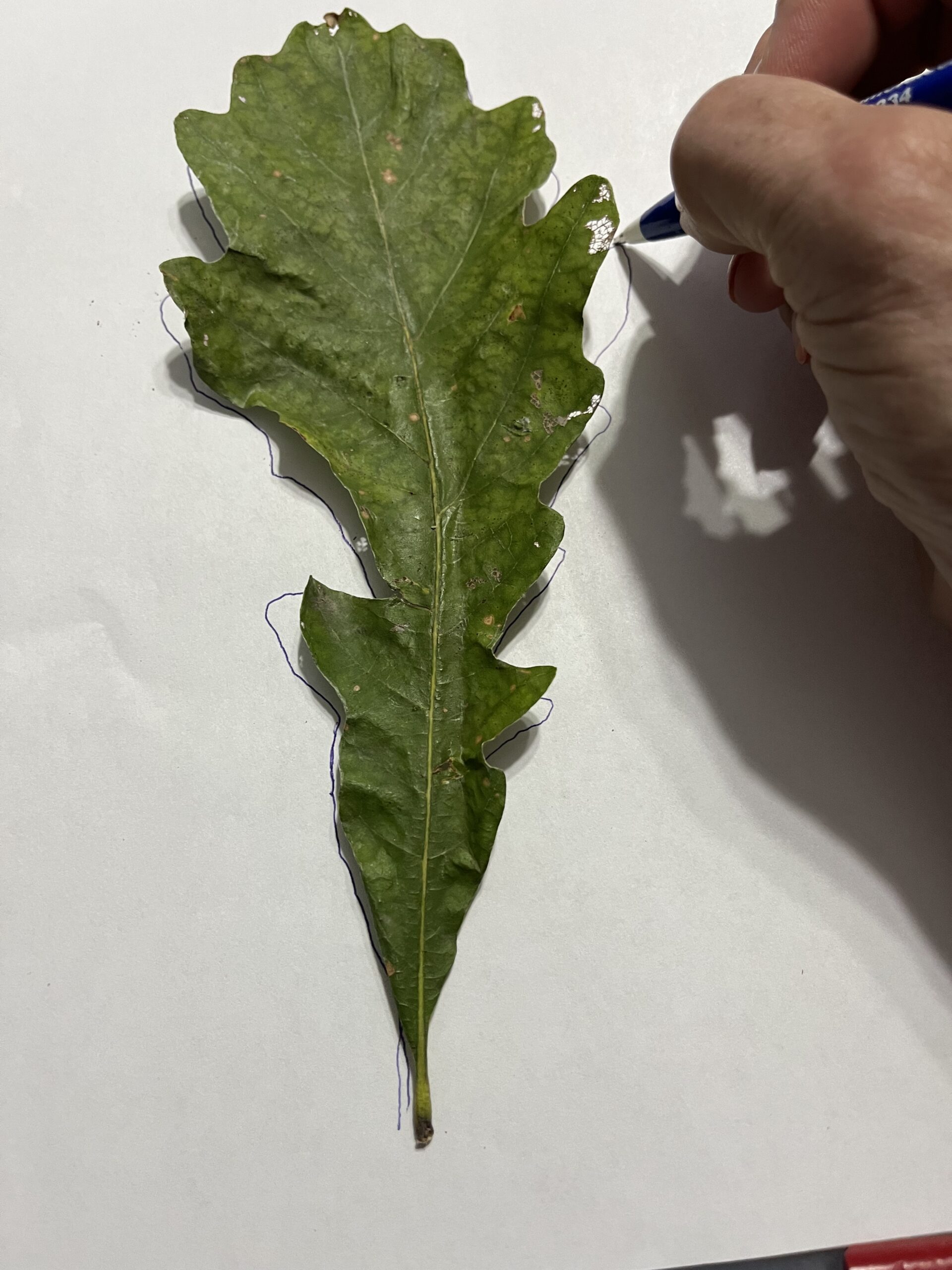 - Write the name of the tree on the paper. If you don’t know what tree the leaf is from, you can take picture of it with your phone and use AI to search for it. You also need to figure out what you want students to know. Do they need the exact name of the tree, such as red maple or bur oak or even the scientific name? Do you just want to put the name of the family it is a part of such as maple and oak?