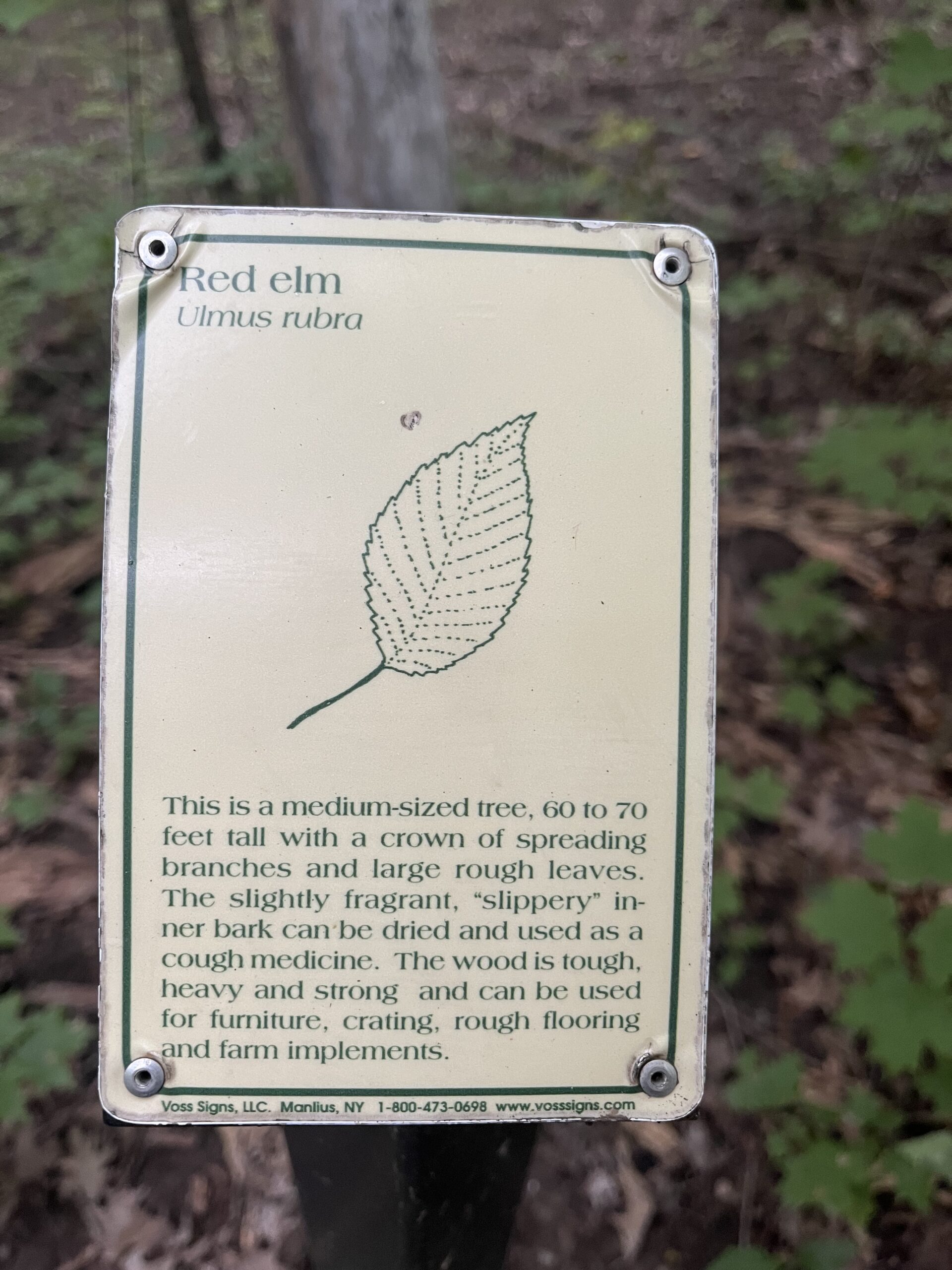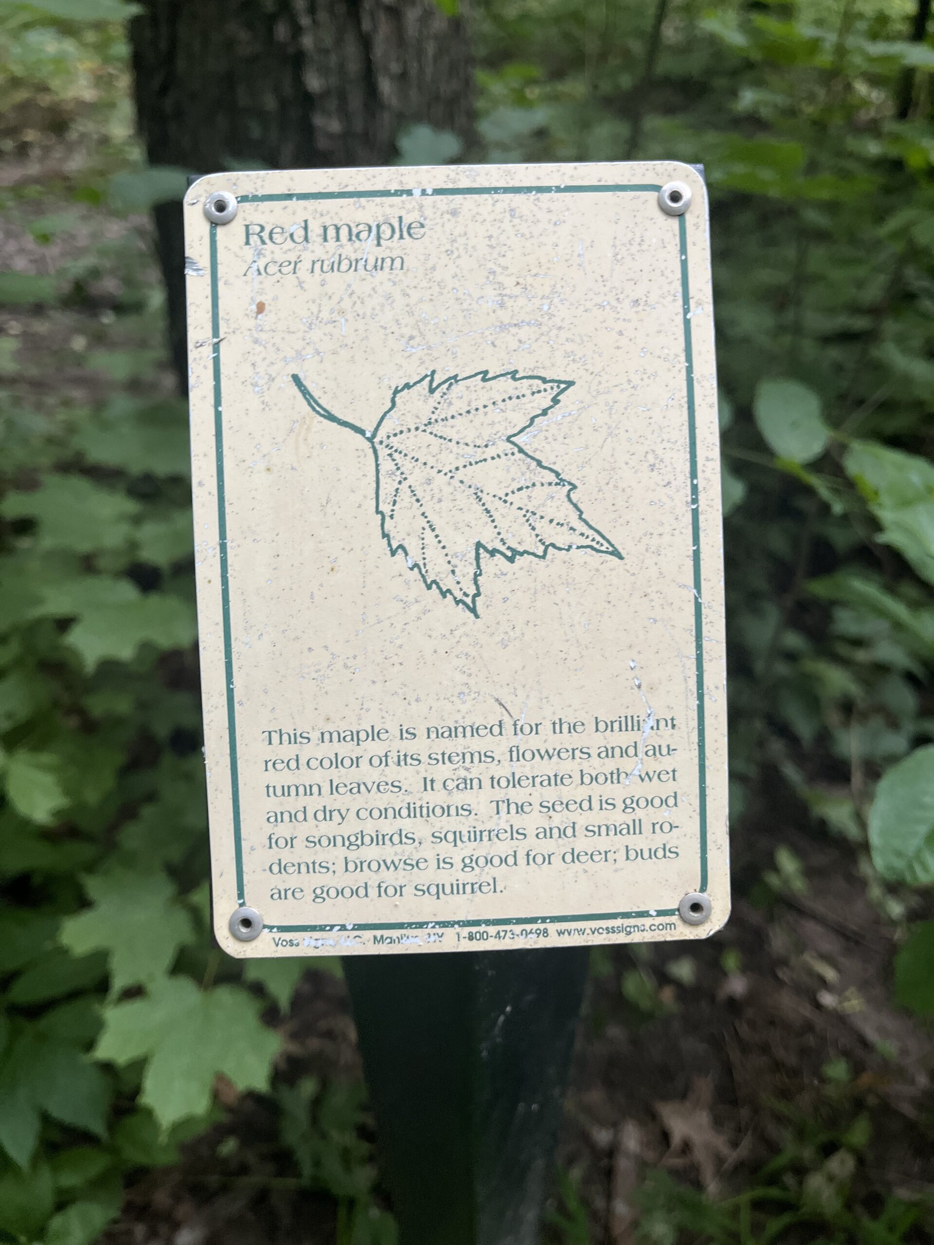 Education of trees and their different uses are the main focus of this 40-acre property. When walking along the trail, there are signs that share information about the different trees. Each sign is next to a tree that the sign describes. Sometimes, the tree might not be there anymore due to storm damage or disease.